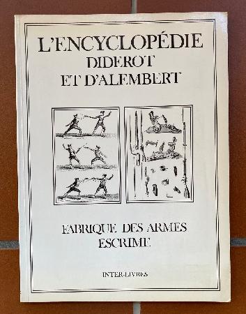 In folio (grand format), non paginé (environ 150 pages), reproduisant les planches de la fameuse encyclopédie (nombreuses planches de figures d'escrime). Bel exemplaire.