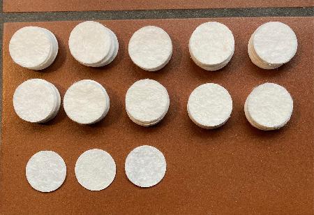 Patches aus Filz Neue, weisse Filzpatches 100 Stück; Durchmesser: 40mm; Stärke: ca. 1mm Privatverkauf: keine Garantie und keine Rücknahme. Twint auf Anfrage möglich. Zuzüglich Versandkosten: CHF 2.50