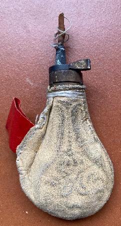 Kleine Pulverflasche im Ledermantel Kleine, handliche Pulverflasche mit Leder umhüllt; Ausguss aus Metall und Stopfen aus Leder. Gesamthöhe: ca. 12cm Breite: ca. 7cm Privatverkauf: keine Garantie und keine Rücknahme. Twint auf Anfrage möglich. Zuzüglich Versandkosten: CHF 9.00