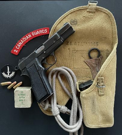 Verkaufe Kanadische Ordonnanzpistole FN HP Inglis No2 MkI, Kal. 9mm, nummerngleich, aus dem Jahre 1944, komplett mit allem ORIGINAL Zubehör wie abgebildet. 1 Originalmagazin INGLIS und 1 Reservemagazin unbekannter Hersteller. Kein Einzelverkauf! Weitere Fotos auf Anfrage; Verkauf mit WES! Abgeholt oder Versand 20.--.