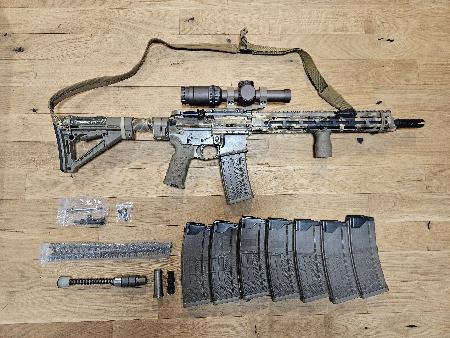 - DDM4 V7 SLW 14.5 Zoll Lauf - Razor Gen II-E 1-6x24 SFP VMR-2 MRAD - Aero Precision ZF Mount Mount - Magpul MBUS Offset Iron Sights - Magpul Furniture - Wyssen Defence 45 Grad Sicherung - Wyssen Defence Mündungsbremse / Feuerscheindämpfer - ALG Trigger - KNS NON-ROTATING Pins - LAW Folder (Kolben klappbar) - JP AR-15 SCS FOR LAW FOLDING ADAPTER H2 BUFFER WEIGHT (um mit Dämpfer zu schiessen) - JP AR-15 SCS FOR LAW FOLDING ADAPTER H BUFFER WEIGHT (um ohne Dämpfer zu schiessen) - Verschiedene Federn mit unterschiedlichem Wiederstand für die SCS - 8x 30 Schuss Lancer Magazine TRANSLUCENT DARK EARTH - Direct Action Sling - Camo Paint Job (kann entfernt werden) - Reserve Verschulsskopf - Reserve Auszieher und Gasringset - Reserve Zündstift - Diverse Reserve Kleinteile Schussbelastung ca. 1500 Schuss, den passenden Schalldämpfer von Wyssen Defence hätte ich ebenfalls im Angebot. Einen passenden Schalldämpfer von Wyssen Defence hätte ich für einen Aufpreis von 500 CHF ebenfalls im Angebot. Bei Interessen einfach melden. Verkauf gemäss den aktuell gesetzlichen Bedingungen.