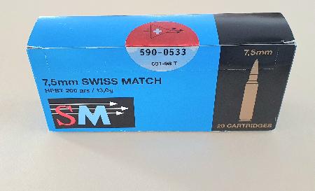 1 Pack a 20 Patronen im Kaliber 7.5x55 SWISS MATCH 200 Grains --- Abholung oder Versand möglich