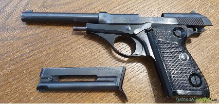 Wenig geschossene, top erhaltene Beretta 72 lr. mit einem langen 14.605 cm Lauf und Starrvisier. Ab Werk mit ergonomischen Griffschalen. Der kleine Kratzer am Lauf wurde durch Neubrünnierung des Laufs restauriert (andere Teile wurden nicht nachbearbeitet). Historie: Dieses Modell war Vorläufer der Beretta 92 S (Alurahmen mit Verschluss aus Stahl), deren Schlitten wegen dem grösseren Kaliber mit mehr Spiel konstruiert werden musste. Die B 72 wurde mit kurzem Lauf einst vom Mossad bei der Flugsicherung (wegen ihrer Zuverlässigkeit, leichtem Gewicht und hoher Genauigkeit) eingesetzt. Schöne Sammlerwaffe, auch für Sportschützen wegen des langen Laufes bestens zum Schiessen lernen. KEIN Twint, keine Bezal Apps, keine QR Codes etc zur Bezahlung möglich (oder Barzahlung bei verabredeter Abholung). NUR Banküberweisung (zu viele Betrüger im Netz). Danke für Verständnis. NUR mit WES! Kein Ausland Versand.