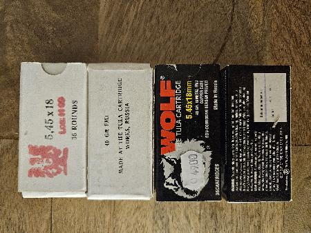 Verkaufe Munition 5,45x18 PSM 2 Pack zu je 36 Schuss Wolf 2 Pack zu je 36 Schuss Tula Russia Es handelt sich hierbei um keine Hartkernmunition. Der Preis ist für alle Vier Pack zusammen Verkauf gemäß Schweizer Waffengesetz Versandkosten CHF 9.00 Kein Versand ins Ausland. Zahlung mit TWINT möglich.