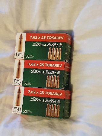 Biete originale Sellier&Bellot Munition für 7.62 x 25 Tokarev. insg. 150 Schuss. FMJ 5.5g 85grs. Abholung (bevorzugt) oder Versand (zzgl CH-Porto ca. 7-8 CHF) TWINT möglich Nur gem. CH-Waffenrecht und innert CH !