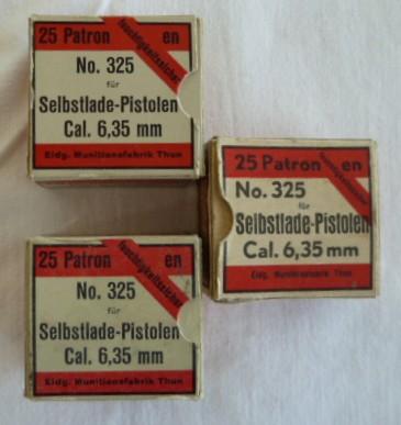 Zum Gebot stehen hier 3 Pack Munition, Cal. 3,35, Munitionsfabrik Thun,