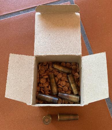 Kurze Messinghülsen, gebraucht; Länge: 40mm; mit passenden Korkplättchen