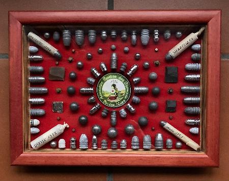 Kunst mit Bleigeschossen Die künstlerisch präsentierte Geschoss-Sammlung bietet einen Überblick über historische Bleigeschosse aus verschiedenen Jahrzehnten. Angesprochen sind vor allem Munitionssammler. Dunkelroter Holzrahmen mit Glas, ca.: Länge: 35cm; Breite: 26cm; Tiefe: 3.5cm Rahmenbreite: 2.5cm Privatverkauf: keine Garantie und keine Rücknahme. Twint auf Anfrage möglich. Zuzüglich Versandkosten: CHF 11.50