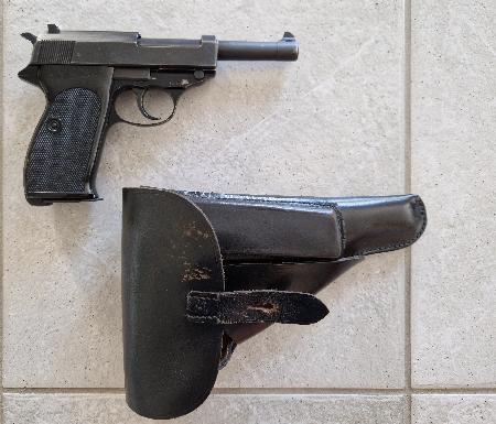 Sie bieten auf eine sehr gut erhaltene Pistole Walther P38. Eine Nachkriegsfertigung, vermutlich aus dem Jahr 1962, mit Alugriffstück. Da es sich um eine zivile Pistole handelt, trägt sie nicht die Bezeichnung P1, sondern P38. Holster dazu, kein Ersatzmagazin. Privatverkauf, gemäss Waffengesetz.