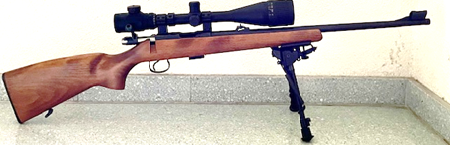 Wegen Neuanschaffung zu Verkaufen! Technische Merkmale • Mechanismus Manuelle Repetition mit Kammerstengel • Schaft Buchenholz • Laufgewinde für Schalldämpfer oder Mündungsbremse • Laufdrall 1: 16 Schussbelastung 500 Schuss (Lauf neuwertig) • Lauflänge 50cm • Magazin 5 Schuss abnehmbar • Gesamtgewicht mit ZF ca. 3,5Kg • Integrierte oder zusätzliche Montageschienen für die Optik Integriert im Angebot: • ZF Montage mit Zielfernrohr (Ritter 6 – 24 x 50) beleuchtetes Absehen (rot & grün / Fadenkreuz) mit Libelle (Wasserwaage) • Zweibein gemäss Foto! Max. länge 28.cm • Eingeschossen (Fleck) auf 50m • Inkl. 400 Schuss (8 Pack) High Velocity Patronen 40grain. Verkupfert! Die Waffe kann gern besichtigt werden (Kontakt über e- Gun!) Verkauf gemäss schweizerischem Waffengesetz! Achtung: kein verkauf ins Ausland!!! Preis ist nicht verhandelbar! Twint wird akzeptiert! Abholung durch Käufer bevorzugt!