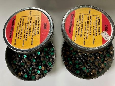 Zündkapseln und Bleikugeln zu Einsatzapparat Lienhard, Büchsen sind wahrscheinlich nicht ganz voll Zustand siehe Bilder. Bei Bedarf können gerne weitere Bilder per Whatsapp angefordert werden 079 403 96 41. Versand nur innerhalb der Schweiz, Porto CHF 8.50 Keine Garantie oder Rücknahme.