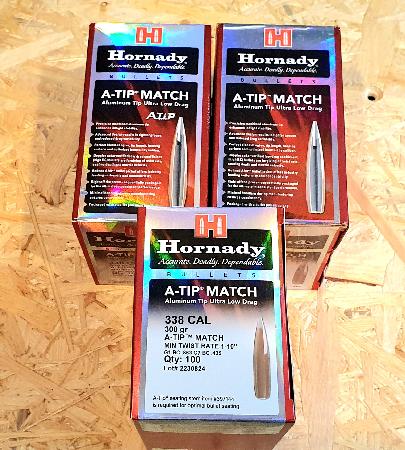 Verkaufe 3 Pack a 100 Stück Total 300 Geschosse HORNADY A-TIP 300 Grain im Kaliber 338 -- Hochpräzise Geschosse mit sehr gutem BC Wert -- Abholung oder Versand