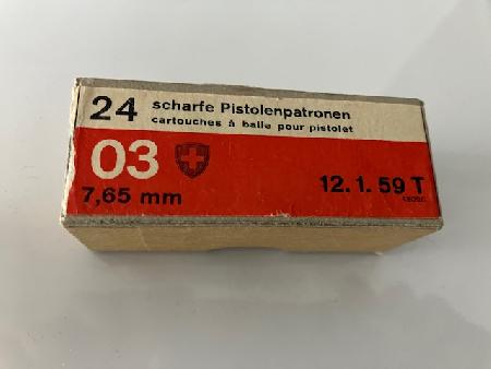 Ein Paket Sammlermunition Parabellum 7.65, Jahrgang 1959, Paket ist geöffnet, aber vollständig. Keine Garantie auf Funktion! Kein Versand ins Ausland, Porto 3.40