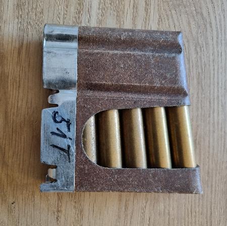 1 Originallader CH-Armee (6 Schuss) Gewehrpatrone Kal. 7.5mm GP11 / Jg. 1951 Thun / OVP - gemäss Bild - Privatverkauf: keine Garantie und keine Rücknahme. Twint auf Anfrage möglich. Zuzüglich Versandkosten: CHF 9.00