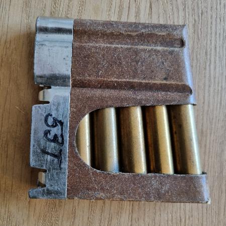 1 Originallader CH-Armee (6 Schuss) Gewehrpatrone Kal. 7.5mm GP11 / Jg. 1953 Thun / OVP - gemäss Bild - Privatverkauf: keine Garantie und keine Rücknahme. Twint auf Anfrage möglich. Zuzüglich Versandkosten: CHF 9.00