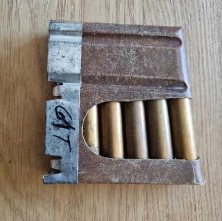 1 Originallader CH-Armee (6 Schuss) Gewehrpatrone Kal. 7.5mm GP11 / Jg. 1961 Thun / OVP - gemäss Bild - Privatverkauf: keine Garantie und keine Rücknahme. Twint auf Anfrage möglich. Zuzüglich Versandkosten: CHF 9.00