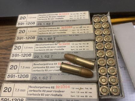 6Pack Revolvermunition 7.5 mm CH Ordonanz Herstelldatum 29.1.62 Thun alles gleiches Los sehr guter Zustand siehe Foto Versand B- Post eingeschrieben